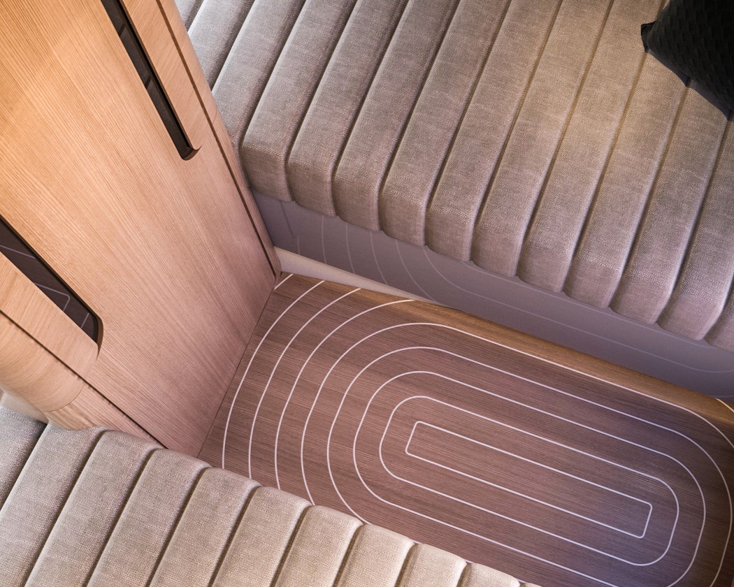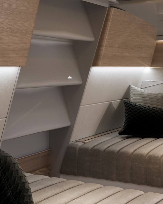 Adjustable leather helm seatLuxury cushion set for all seatsLeather upholstery sunbedPremium foam deckingFolding stainless steel swim ladder